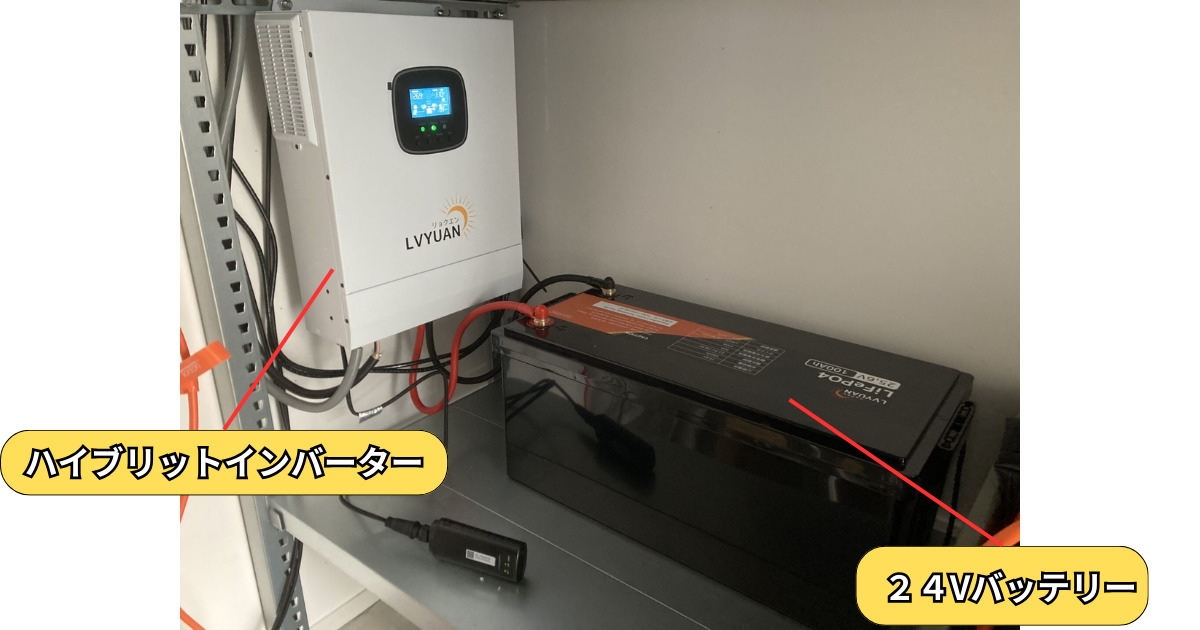 ハイブリッドインバーターを使うために、別途24V蓄電池を導入しました。