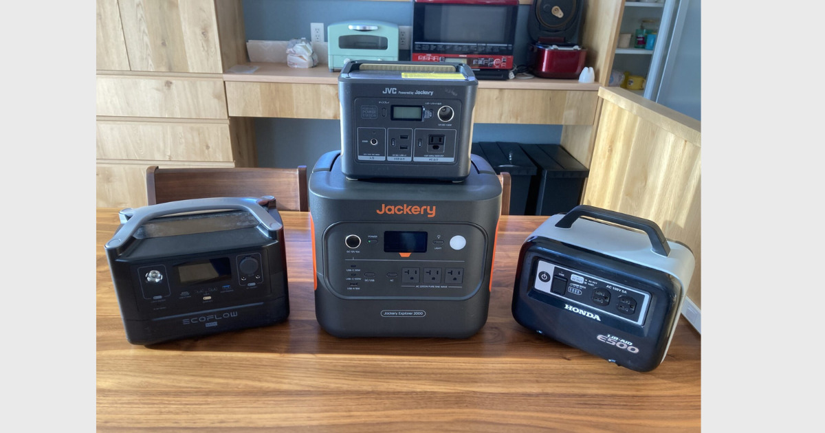 現在、私は『Jackery 2000 NEW』、『ホンダ リベイド E500』、『JVC BN-RB37-C』、『EcoFlow RIVER MAX』の4機種を保有しています。