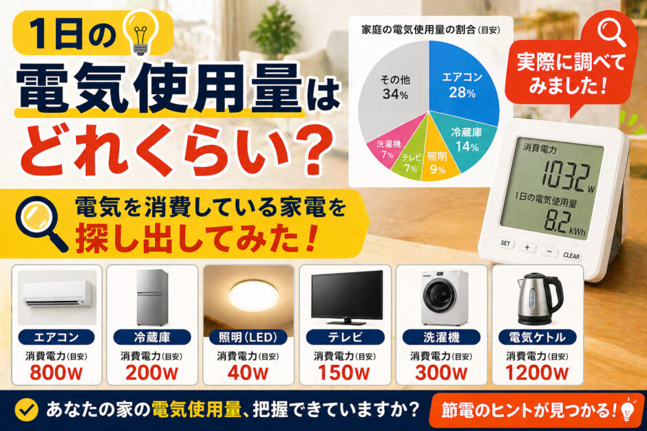 我が家もほぼ同水準でしたが、「どこで電気を使っているか」を把握するまで、なんとなく電気代を払い続けていた状態でした。