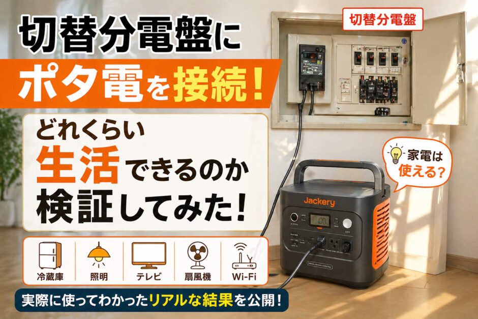 今回は、実際に「Jackery 2000 New」を切替分電盤に接続して、24時間生活してみた検証結果をお伝えします。