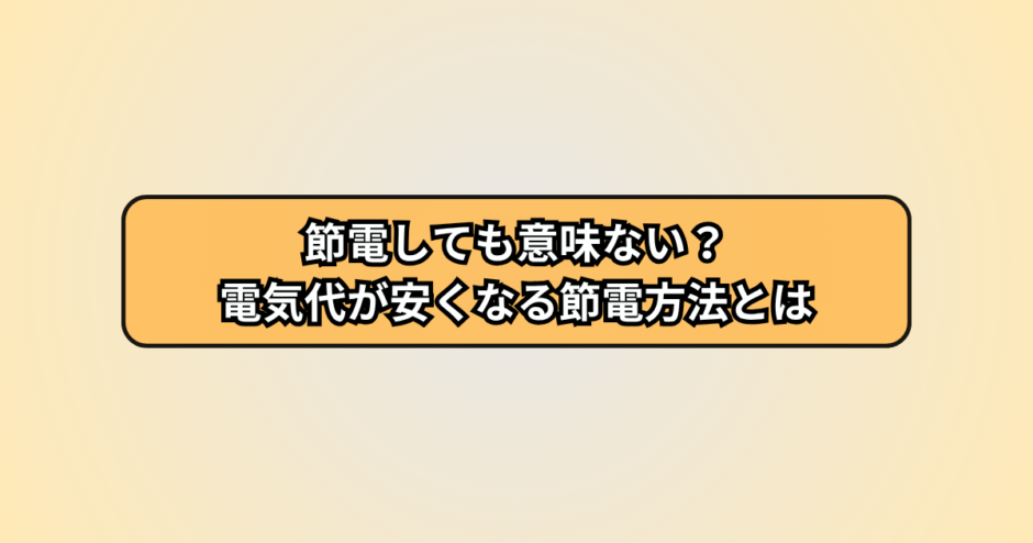 こまめに照明を消す・コンセントを抜く・エアコンの設定を変えるといった節電は、月に数十円〜数百円程度の効果しか出ないことがほとんどです。