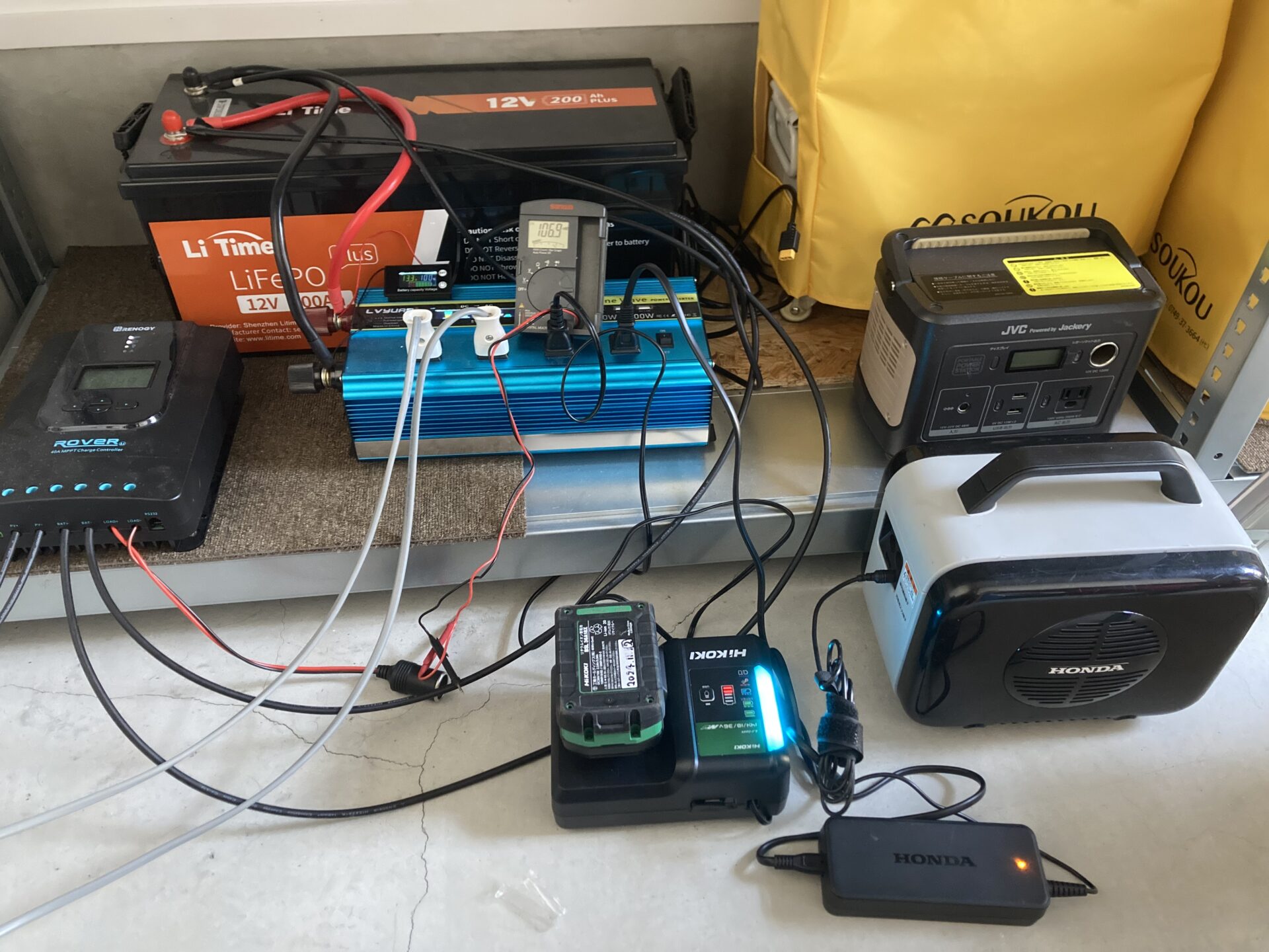 Jackery 2000 Newをソーラーパネルで毎日満充電し、その電気を毎日使い切る……というサイクルを繰り返しています。